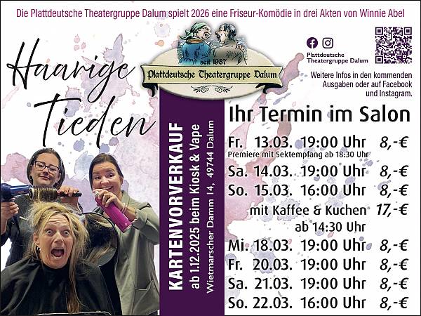 11.11.2025 Dalum Die Proben laufen bereits auf hochtouren, ihr dürft gespannt sein! Plattdeutsche Theatergruppe Dalum Aufführungen Fotos